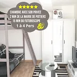 Chambres Poitiers Centre Ville - Salle de Bain, Réfrigérateur, TV et machine à café privatifs - Cuisine commune - Terrasse - Hôtel de ville à 200m